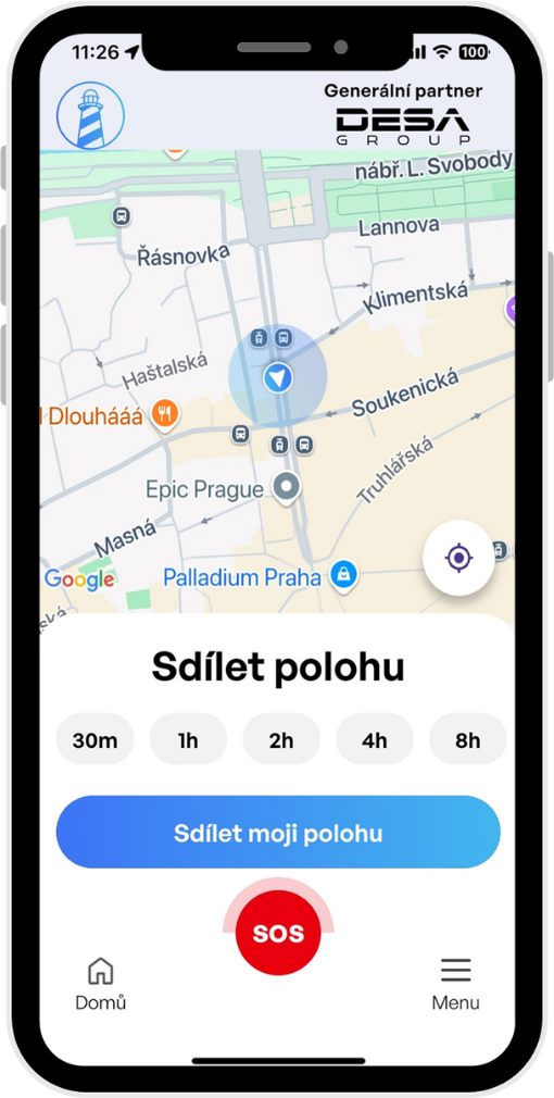 V aplikaci Maják 1.0 najdeš všechny záchranné složky na jednom místě a vždy po ruce. Můžeš je kdykoli a kdekoli kontaktovat prostřednictvím tísňového volání nebo použít funkci tichý chat. Můžeš také sdílet svou polohu s přáteli bez ohledu na mobilní platformu, nebo je požádat o pomoc pomocí zprávy se svými polohovými údaji.