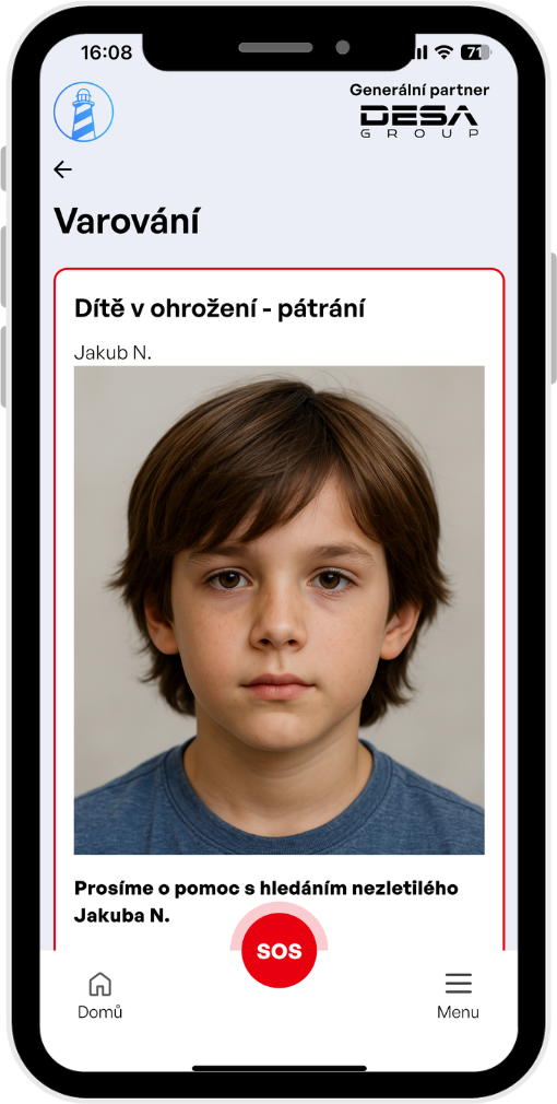 Maják obsahuje funkci příjmu výstrah a varování. Vyber si kraj odkud chceš dostávat varování a budeš dostávat zprávy v reálném čase. Jedinečnost spočívá v možnosti zasílání zpráv včetně fotografií a krátkých videí. Tato funkce může zachraňovat životy při hledání ohrožených osob.